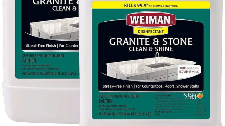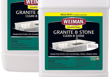 To Keep your kitchen and bathroom countertops looking their best we use only Weimans granite/stone polish.
