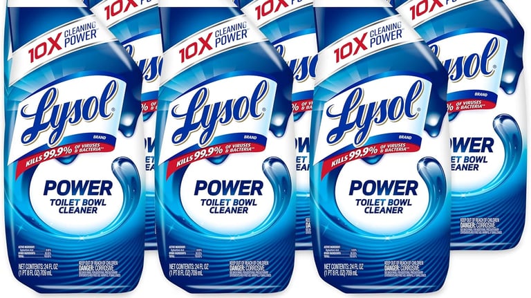 Lysol POWER toilet bowl cleaner used in all bathrooms.