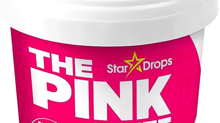 On stubborn stains we use Pink Stuff to help scrub away grime and water spots.